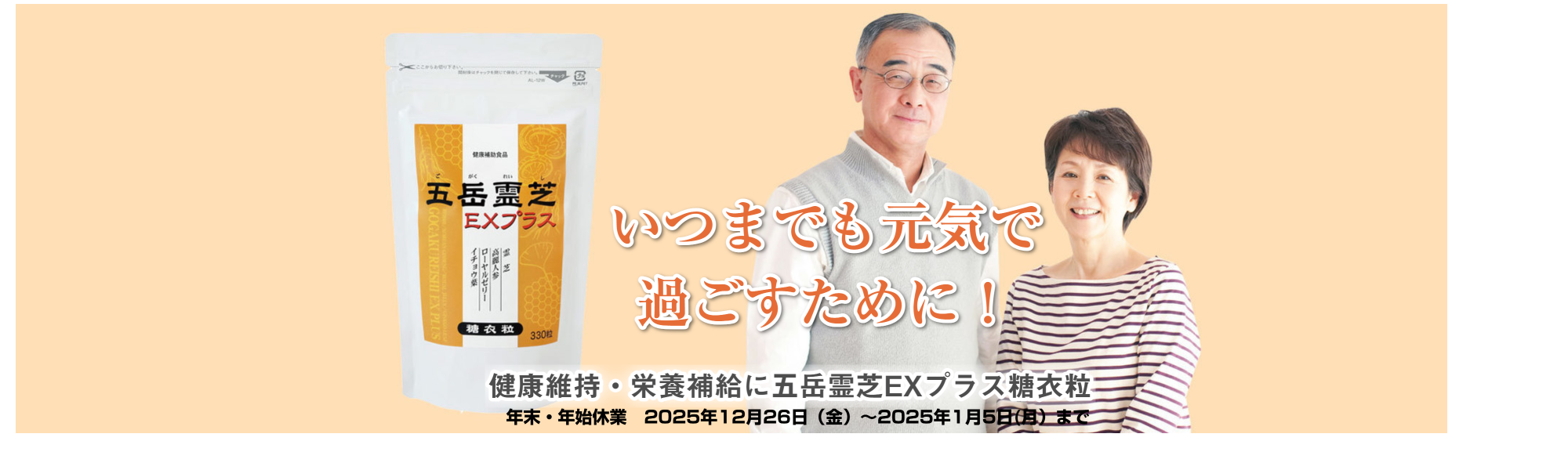 多数のお客さまのご要望により、『五岳霊芝EXプラス糖衣粒』を新発売しました。霊芝エスモンプラスと同じ成分、同じ量が入ったものを作りました。商品名を『五岳霊芝EXプラス糖衣粒』にしました。使いやすいアルミパウチ袋にリニューアル。価格も8,980円(1袋330粒、送料・代引手数料無料、税込み)とお買い求め安くなりました。